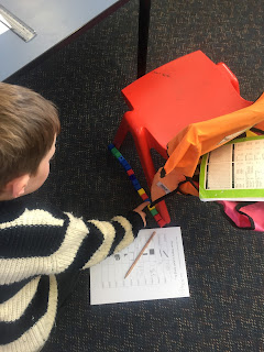 This week we have been learning about measurement in maths. We have been learning how to estimate and measure the length of different objects in our classroom using non standard units (blocks). Here we are hard at work.